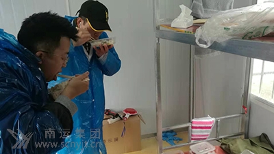 西充分公司外派防疫執(zhí)勤人員吃著已沒有溫度的盒飯