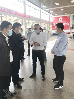 副市長陳有波(右二)在南充汽車客運(yùn)站檢查“五一”節(jié)安全及疫情防控工作。