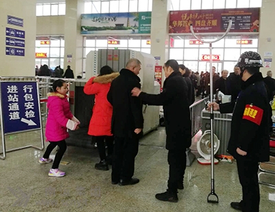 引導(dǎo)農(nóng)民工對(duì)行包進(jìn)行安檢
