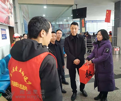 為切實(shí)做好春運(yùn)期間西充縣農(nóng)民工交通運(yùn)輸服務(wù)保障工作,有效滿足農(nóng)民工出行需求,確保農(nóng)民工平安返鄉(xiāng),讓農(nóng)民工在交通運(yùn)輸領(lǐng)域感受到歸鄉(xiāng)的幸福感。西充縣總工會(huì)、西充縣交通運(yùn)輸局、西充縣道路運(yùn)輸管理局、南運(yùn)集團(tuán)西充分公司與自愿者服務(wù)隊(duì)攜手,在西充汽車(chē)客運(yùn)中心站組織開(kāi)展“心系農(nóng)民工 情滿回家路”活動(dòng)。 1月20日上午,西充縣委常委、總工會(huì)主席蒲永紅一行帶隊(duì)到西充汽車(chē)客運(yùn)站“心系農(nóng)民工 情滿回家路”服務(wù)站視察農(nóng)民工返鄉(xiāng)運(yùn)輸服務(wù)保障活動(dòng)開(kāi)展情況。 (秦紅梅)