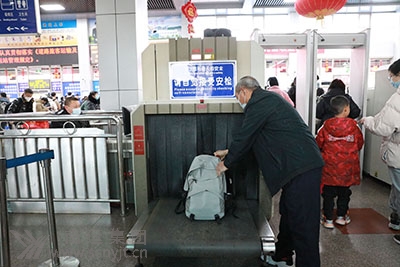 在進站安檢區(qū),“大包小包請過安檢”的小喇叭溫馨地提示著旅客。2臺行包安檢機不停地工作著,安保人員警惕地值守著,嚴格按照“逢包必檢、逢液必查、逢疑必問”原則開展安檢工作,所有乘客均須接受安檢人員手檢,所有包裹、行李均須經過安檢機,所有液態(tài)物品均須接受安全檢驗,堅決杜絕漏檢現(xiàn)象,嚴防易燃易爆等危險品、管制刀具和國家明令禁止攜帶的違禁物品進站上車,堅決把危險品堵在站外和車下。