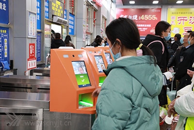 該車站持續(xù)優(yōu)化售票組織工作,積極拓展互聯(lián)網、小程序等售票渠道,以及手機支付等應用范圍,充分發(fā)揮10臺自動售(取)票機的作用,引導旅客使用智能自助購取車票,減少近距離接觸,切實便捷旅客購票乘車。同時開設“老弱病殘、孕、軍人購票優(yōu)先窗口”、“農民工售票窗口”等3個人工售票窗口,延長開窗時間,調整窗口功能,確保旅客到站購票不排長隊。另還新增了1臺導購機,旅客在上面可自主查詢發(fā)班信息。志愿者們分別引導旅客在自助購(取)票機上自行購(。┢保新每妥杂X保持一米間距,一切井然有序。有位七十歲的大爺徑直走到自助購(取)票機上,在志愿者的引導下,一分鐘不到就買到車票,他十分高興地說:“現(xiàn)在買票不用排隊了,直接在機器上購取票,十分快速方便!” 外面寒風冷冽,站內暖意融融。頭戴小紅帽的“匡紅艷愛心班”站務人員在售票廳和候車廳不停地來回穿梭著,積極熱情地為旅客提供乘車咨詢、提拉行李、扶老攜幼、搬運行李、購票取票、提供熱水等便民志愿服務,將“情滿旅途”志愿服務融入旅客出行的每個細節(jié),切實保障每位旅客能舒心返崗,讓旅客們感受來自南運人的溫暖。
